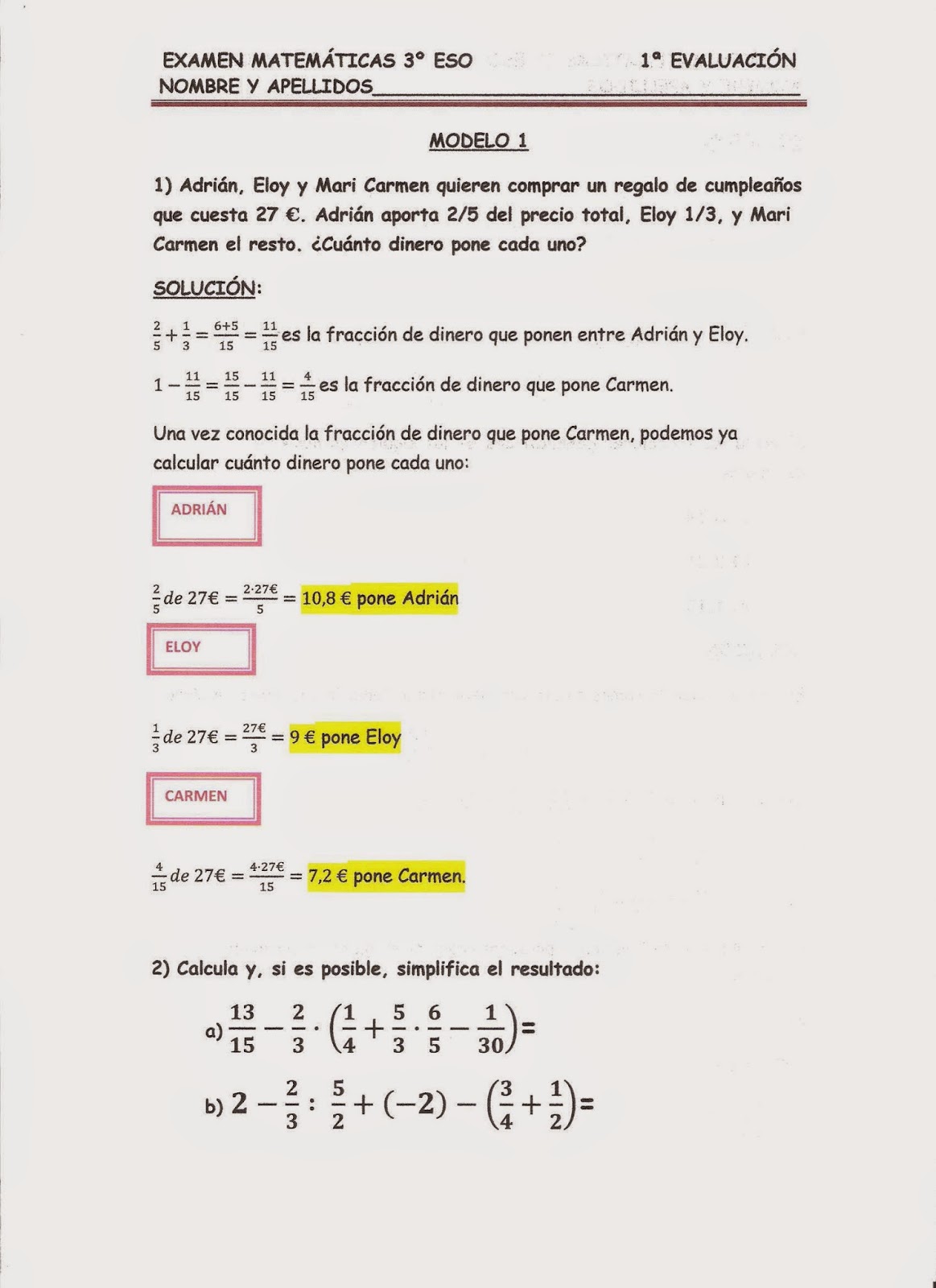 TRABAJO DE NAVIDAD MATEMÁTICAS 3 ESO